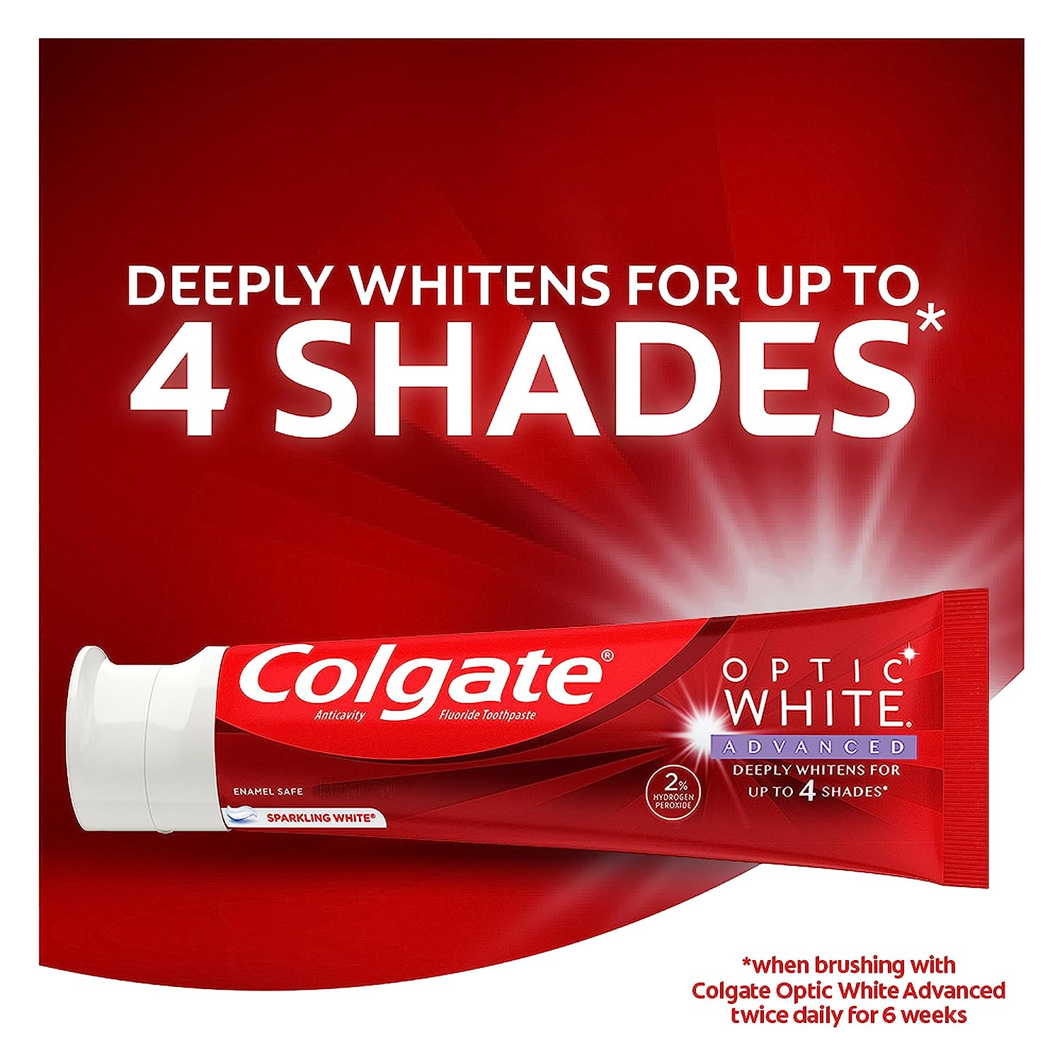 - Three 3.2 oz. tubes of Colgate Optic White Advanced Whitening Toothpaste